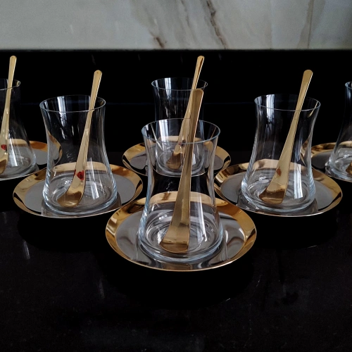 • Zarif Gold Çay Takımı - 6 Kişilik, 18 Parça